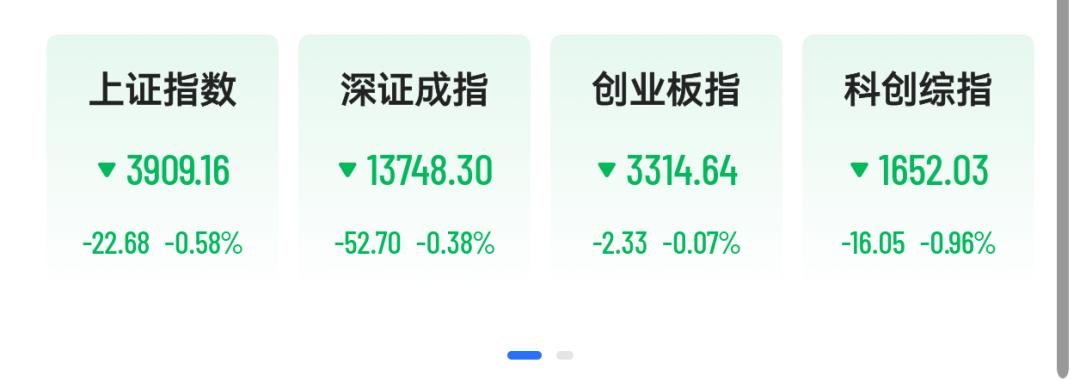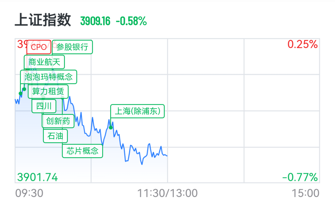 具体来看,科创综指跌近1%,沪指跌0.58%险守3900点,深成指跌0.38%,创业板指跌0.07%。沪深两市半日成交额1.22万亿元,较上个交易日缩量2420亿元。全市场超4100股下跌。